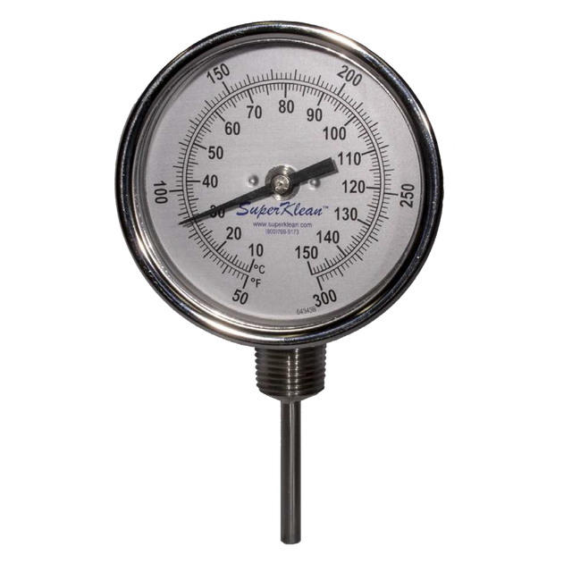 The Mixing Station Temperature Gauge is an accessory for SuperKlean mixing stations that allows for seamless monitoring of water temperatures. It is constructed of stainless steel and the angle is adjustable. This mixing station pressure gauge can replace an existing broken gauge or be added to a station to get accurate temperature outputs safely at the water source.
